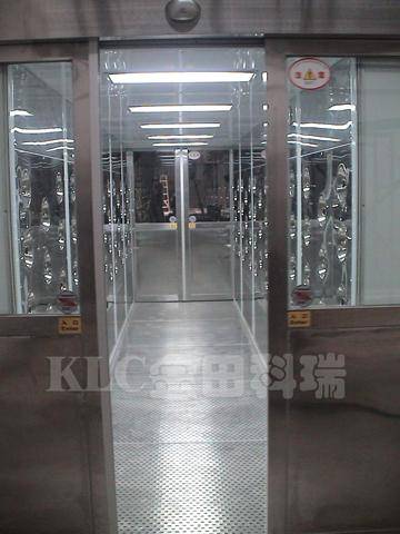 河北石家庄风淋室/陕西风淋室/西安风淋室/四川风淋室风淋室人性化的高科技智能可编程微处理控制器:给每一个使用者极大程度上的方便性、专用性和安全性控制。 转角风淋室构采用阿基米德螺旋型设计的送风系统提供25m/s超强风速,确保进入洁净室的人员及货物达到彻底除尘的完美效果。采用全自动控制运行,双门电子互锁,红外线感应自动吹淋。 二、科瑞牌风淋室特点: ★1.采用更适合洁净室原理的圆弧转角; ★2.净化级别:静态千级; ★3、箱体整体材质为冷板喷塑料/或者不锈钢; ★4、有隔板高效过滤器,过滤效率为:99.99%@0.3μm,确保净化级别; ★5、软键触按式时间继电器,LED液晶显示及设置吹淋时间,0-99s可调(出厂设置为:15s); ★6、电源:3N、220V 、 50HZ 、 1.1KW ; ★7、本产品出厂时,按照美联邦标准209E逐台检测后出厂,可靠性高 三、风淋通道的使用: (1)进入屏障环境的人员应在外更衣室脱去外衣,除下手表、手机、饰品等物品。 (2)进入内更衣室,穿戴净化衣、帽、口罩、手套。 (3)人员进入风淋通道时先调好风淋时间,轻轻触按风淋室面板的电源按键,接下来按照明和风机按键,进入风淋通道将风淋通道门关闭,进行吹淋。 (4)风淋结束,进入屏障环境; (5)风淋室的管理: 1.应轻开轻关风淋室内、外门。 2.在使用过程中人员请不要随意触摸开关。 3.遇风淋室发生故障时,应及时关掉急停开关,报专业维修人员修理。 建议: 在吹淋过程中请双手举起旋转身体360度,便于全方位除尘。 在风淋通道内铺上粘尘垫,它可以把脚下尘粘掉,洁净效果更佳。 主页:www.gdklc.com 传真:020-84554318 Email:zhaoyajie42@163.com 联系人:赵雅洁 13826426509