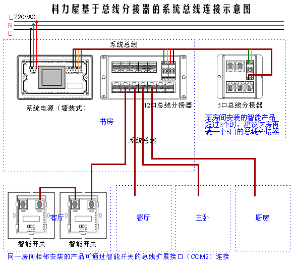 图1、科力屋智能家居系统总线连接示意图